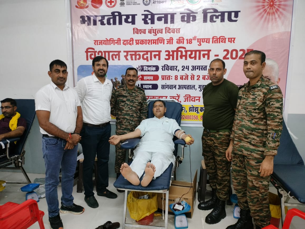विश्व बंधुत्व दिवस पर 232 ब्लड यूनिट भारतीय सेना को समर्पित की