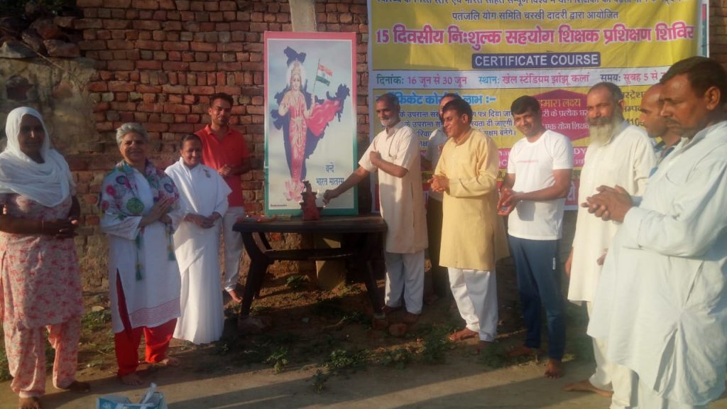 निःशुल्क सह योग शिक्षक प्रशिक्षण शिविर में ब्रह्माकुमारी वसुधा बहन को किया सम्मानित